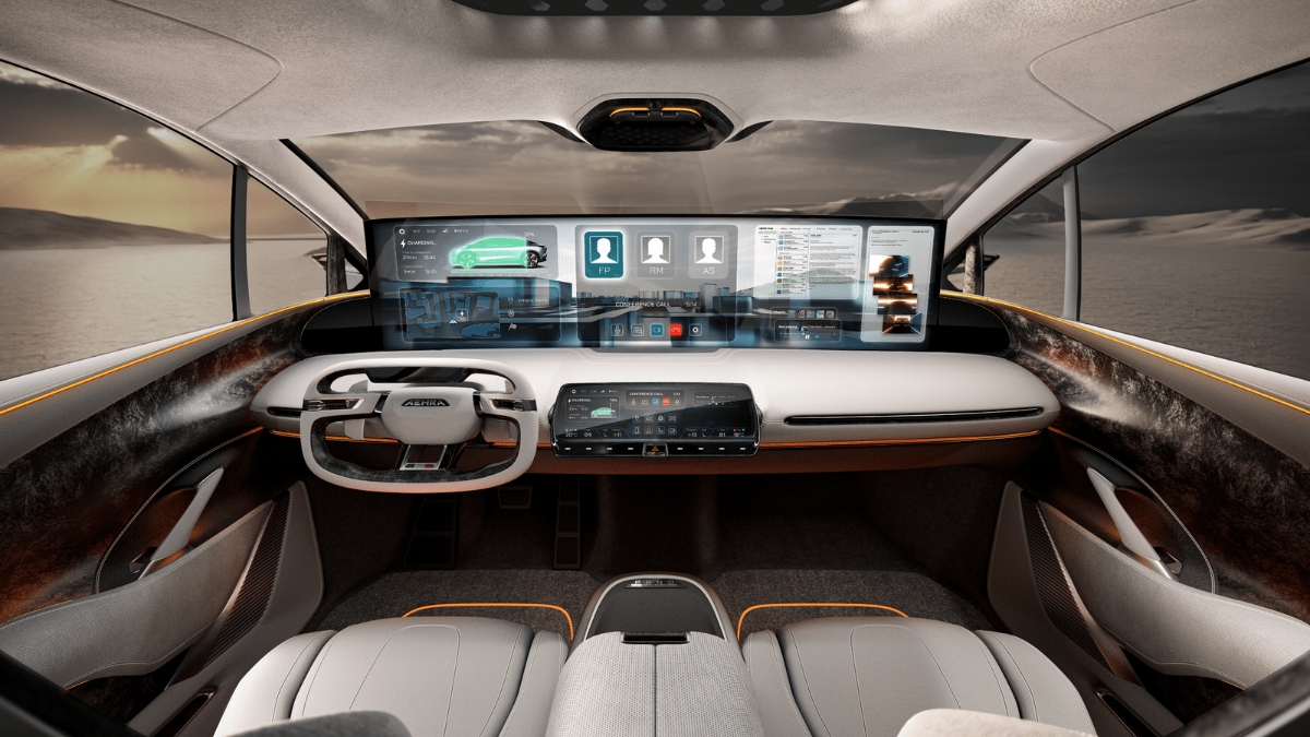 Si tratta di un brevetto depositato da Aehra, la quale ritiene che sarà in grado di stabilire nuovi standard, un po’ come ha fatto Tesla con gli schermi flottanti. Le funzioni si comandano infatti tramite un secondo display, più piccolo, al centro della plancia e che funge appunto da centro di controllo.