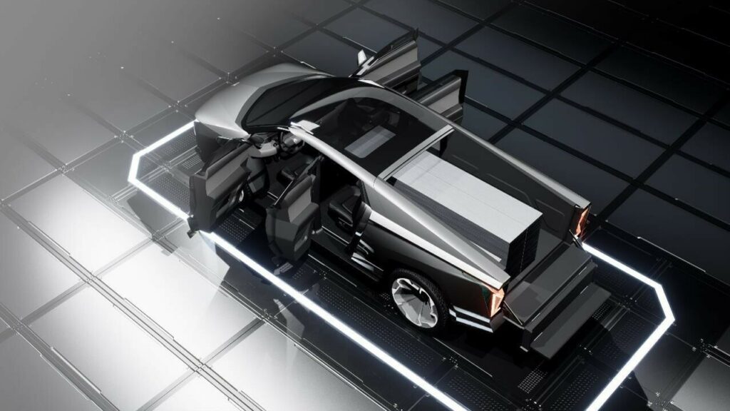 Il primo prototipo è il RoboTruck 1T, un pickup a forma di cuneo che ricorda parecchio il Tesla Cybertruck. Il modello vanta una carrozzeria sagomata, unità luminose eleganti e una piccola cabina. Possiamo anche notare ruote massicce e qualcosa che sembra essere una parete divisoria di tipo Avalanche.