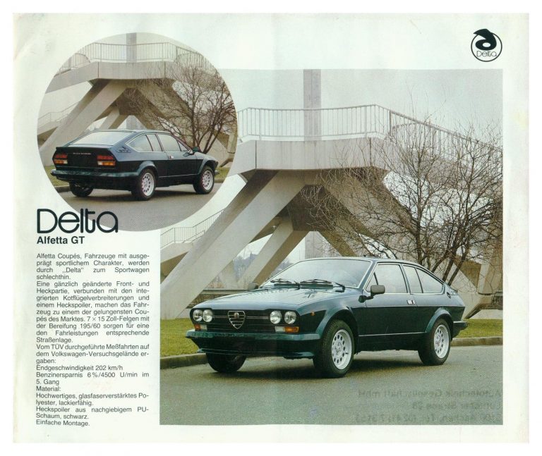 L’Alfa Romeo Alfetta GTV Delta veniva preparata in Germania e non certo dall’Autodelta a Settimo Milanese. Un punto incontrovertibile che è bene mettere all’inizio di questa storia. Nel corso del 1980, infatti, l’importatore tedesco dell’Alfa Romeo commissiona alla Delta Autotechnik Gmbh di Düren, uno dei tanti produttori di accessori aftermarket per elaborazione di carrozzeria attivi in Germania in quel periodo, un lotto di Alfetta 2.0 GTV coupè modificate sia nell’estetica sia nella meccanica.