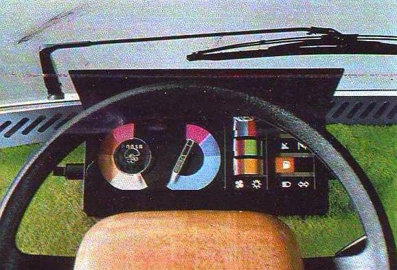 Cruscotto, pannelli porta e pavimento dell’auto sono rivestiti da un tessuto sintetico peloso verde acceso, abbinati a sedili, leva del cambio e cuscino centrale del volante in velluto giallo. La strumentazione è più simile ad un’opera di pop art che al quadro di un’automobile, con contagiri e tachimetro senza scala numerica, sostituita da settori colorati. Stesso discorso per le varie spie, anch’esse molticolre. Certamente di grande impatto visivo ma dalla dubbia praticità nell’uso quotidiano dell’automobile