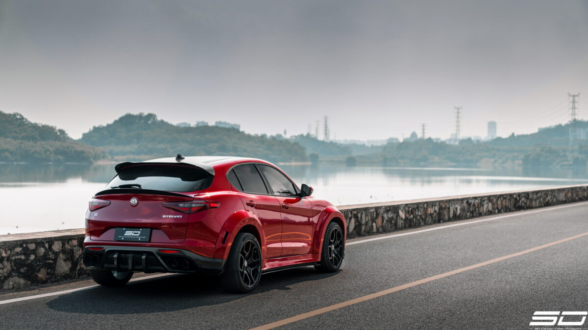 Il nuovo kit di SD Carbon è stato pensato per le Stelvio “base”, ma la società inglese Deranged ha a sua volta modificato il corpo vettura per adattarlo alla Stelvio Quadrifoglio.