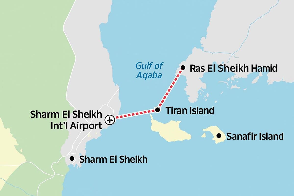 Il punto di attraversamento più logico resta lo Stretto di Tiran, dove la distanza tra le due sponde è di appena 6,4 chilometri. Un tratto breve, ma ricco di ostacoli tecnici e ambientali: dalle profondità marine alla tutela della barriera corallina, senza dimenticare il traffico marittimo internazionale che attraversa quotidianamente questa rotta.