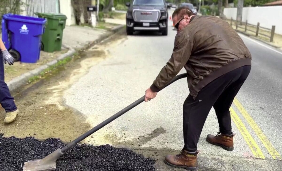 Arnold Schwarzenegger si diletta nei lavori stradali, ma non tutto va secondo i piani. L’ex governatore si è infatti ritrovato a riparare un’enorme buca nella strada del quartiere di Brentwood a Los Angeles. Nonostante le numerose richieste di intervento dei residenti, le autorità comunali non avevano fatto nulla per ripararla, cosa che ha provocato danni ad auto e bici.