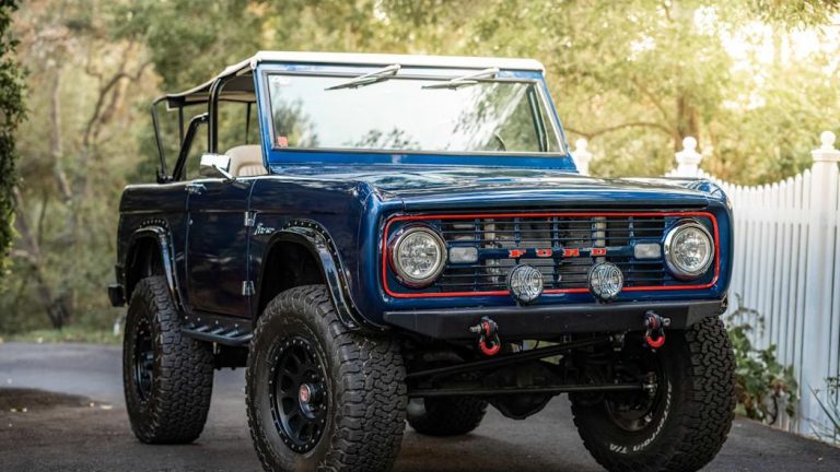 Il Bronco è dotato di un motore V8 trapiantato con carburante Fitech e kit di accensione MSD. Il veicolo gode anche di ammortizzatori Bilstein, che rialzano l’assetto per meglio contenere le ruote Method da 17 pollici e, soprattutto, i pneumatici BFG da 35 pollici. Nuovi anche i fari KC, così come i freni anteriori Wilwood che meglio aiutano ad evitare gli ostacoli sul sentiero.