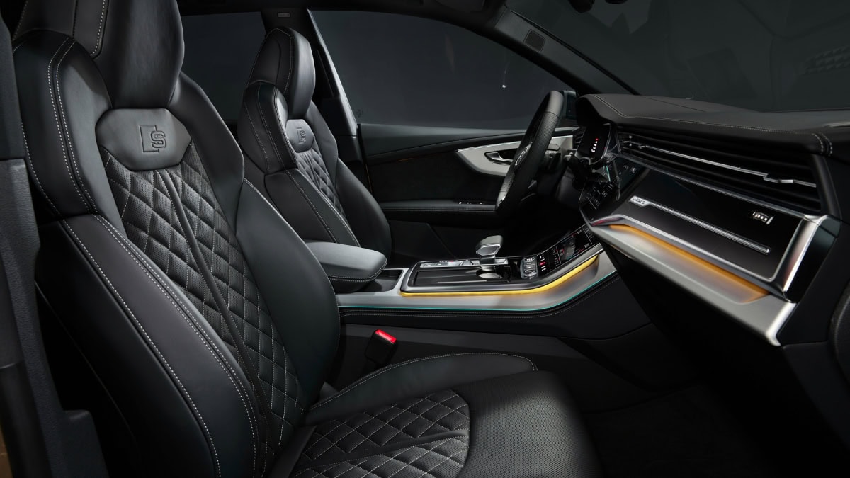 Audi ha ampliato le personalizzazioni per il suo SUV top di gamma. Le cuciture sui rivestimenti dei sedili nella versione base ora sono disponibili di serie in un colore grigio a contrasto. Ci sono anche nove inserti decorativi tra cui scegliere, tra cui legno naturale silver per la versione standard, twill carbon matt e alluminio silver grey lineare per la Q8 con il pacchetto sportivo S line, nonché per la SQ8.