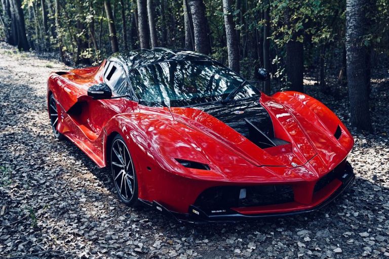 La simil LaFerrari utilizza il V10 da 5,2 litri originale della R8 da 511 CV ed ha percorso appena 40.000 km, che poi è un chilometraggio assurdo per una LaFerrari. La replica presenta porte butterfly oltre a pannelli della carrozzeria interamente personalizzati e rifiniti in una tonalità di rosso ispirata all’iconico Rosso Corsa di Maranello.