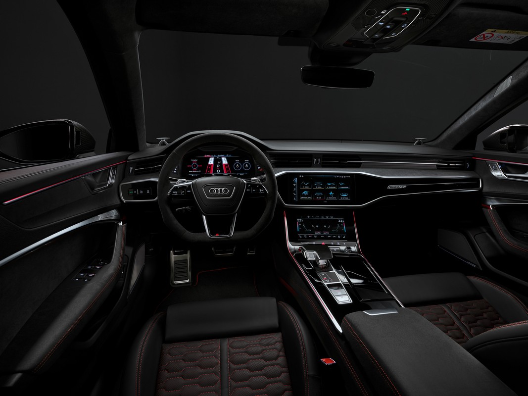 I nuovi modelli performance sono disponibili complessivamente in 16 colori carrozzeria. Costituiscono un’esclusiva, e una prima assoluta per le gamme Audi RS 6 Avant e Audi RS 7 Sportback, le tinte blu Ascari – metallizzato e opaco – e argento Rugiada opaco. La finitura grigio opaco è dedicata, di serie, alle calotte dei retrovisori laterali, allo spoiler anteriore, ai flap in corrispondenza delle prese d’aria laterali, agli inserti alle minigonne, ai mancorrenti al tetto (limitatamente alla Avant), alle cornici dei cristalli laterali e all’estrattore. In alternativa, è disponibile il pacchetto look carbonio opaco. In questo caso sono in nero i mancorrenti al tetto e le cornici dei cristalli laterali. Gli anelli Audi e la denominazione modello sono in cromo o in nero.