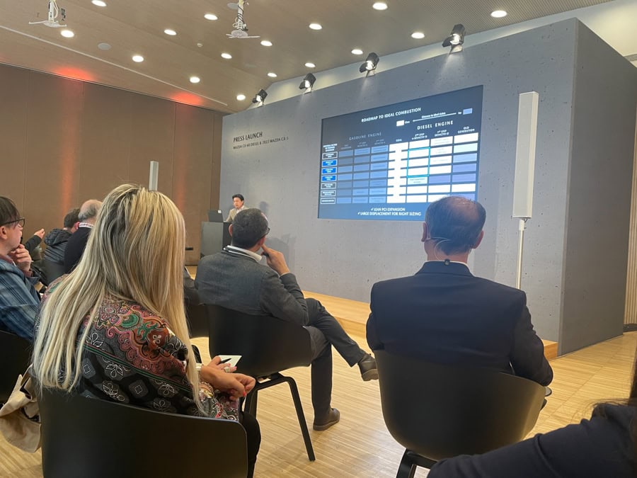 L’incremento di potenza non è eccessivo, ma si sente molto. Il motore è ben più reattivo e sopporta meglio il peso della CX-60.