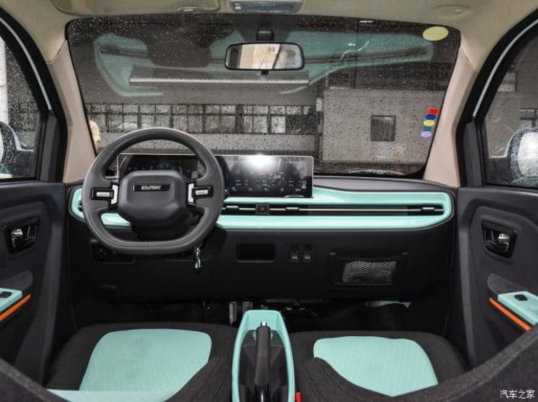 All’interno la tecnologia si fa notare, con un doppio schermo sospeso da 10,25 pollici, diviso tra cruscotto e infotainment. Inoltre, gode di telecamere a 360 gradi, sensori di parcheggio anteriori e posteriori, frenata antibloccaggio e distribuzione della forza frenante, oltre all’assistenza per la ripartenza in salita. L’auto usa anche dei freni a disco anteriori, mentre al posteriore sono a tamburo come ormai di consueto sulle elettriche.