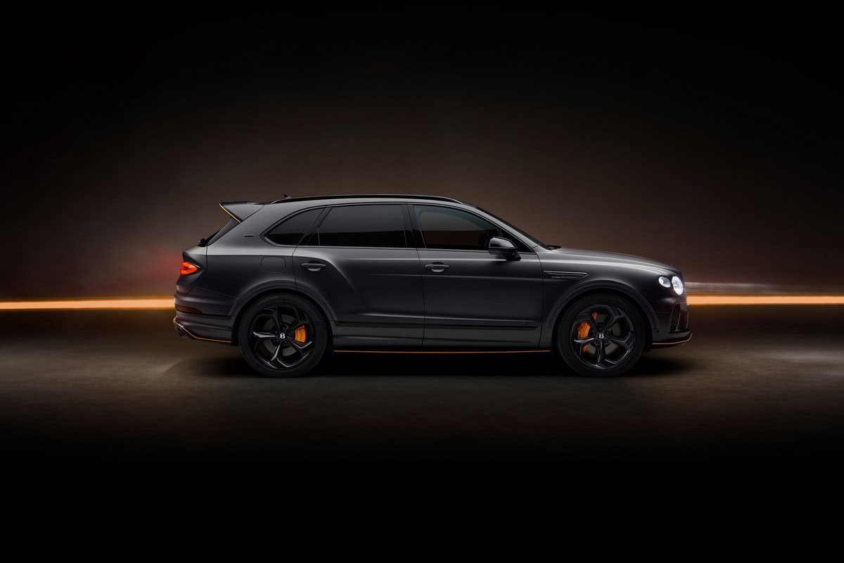 Esternamente, l’accent color si manifesta attraverso una striscia laser che decora lo Styling Specification della carrozzeria, evidente sotto il paraurti anteriore, le soglie laterali e la parte superiore dello spoiler posteriore. Le pinze dei freni sono verniciate in tinta con i cerchi da 22″ in nero, mentre tutti gli elementi luminosi esterni sono sostituiti da dettagli in nero lucido. Questa è la prima volta in 105 anni di storia di Bentley che le ali e le scritte del marchio vengono presentate in nero lucido, con un badge Black Edition che decora il montante posteriore D.