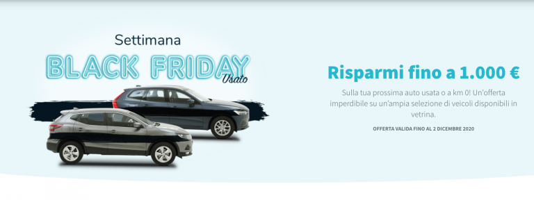La proposta delle auto usate vede interessanti sconti per il Black Friday. Non poche sono le auto usate in offerta, con una promozione divisa in 3 fasce di sconto sul prezzo di listino: 500, 750 o 1000 euro. Ottenere lo sconto è molto semplice: dopo aver selezionato la vettura scelta, è sufficiente inserire il codice BF2020 nell’apposita sezione, per ottenere il prezzo scontato.
