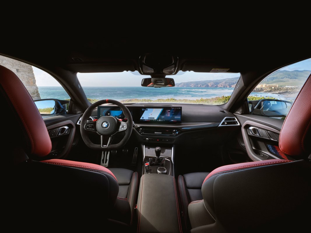 Gli interni presentano materiali di alta qualità, con sedili M Sport in pelle Vernasca disponibili in varianti bicolore. I sedili a secchiello M Carbon offrono un’opzione leggera e confortevole, perfetta per l’uso in pista. Il volante in pelle M, con bordi a fondo piatto e palette del cambio, esalta la sensazione di guida sportiva.