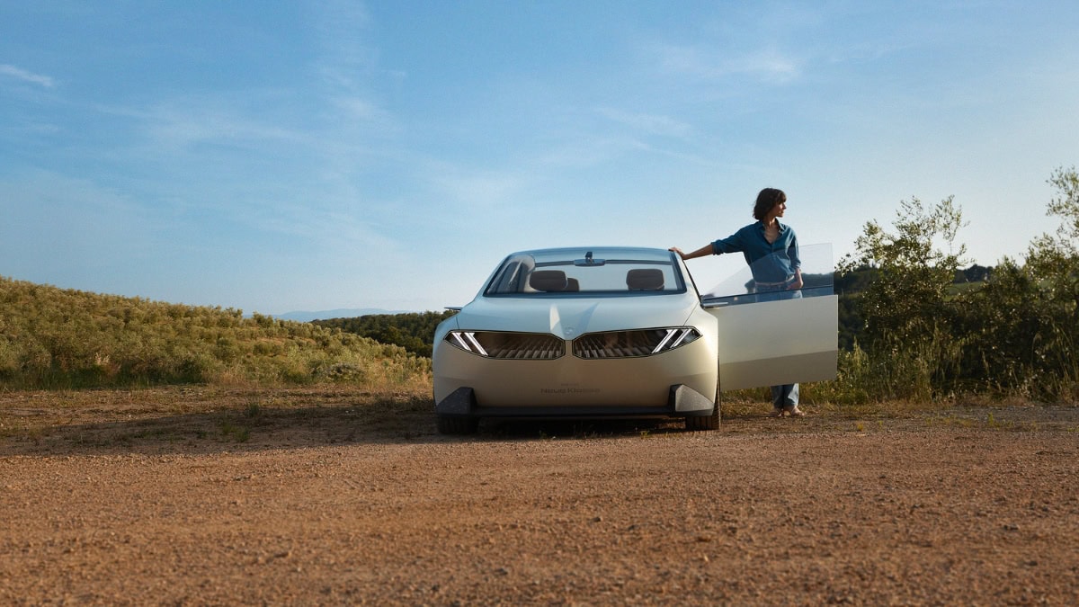L’esterno presenta tutti gli elementi di design che definiranno i diversi modelli della Neue Klasse. È pulito e senza tempo, e si distingue per i passaruota massicci, il tetto arretrato e mantiene anche il frontale inclinato tipico delle vetture BMW.