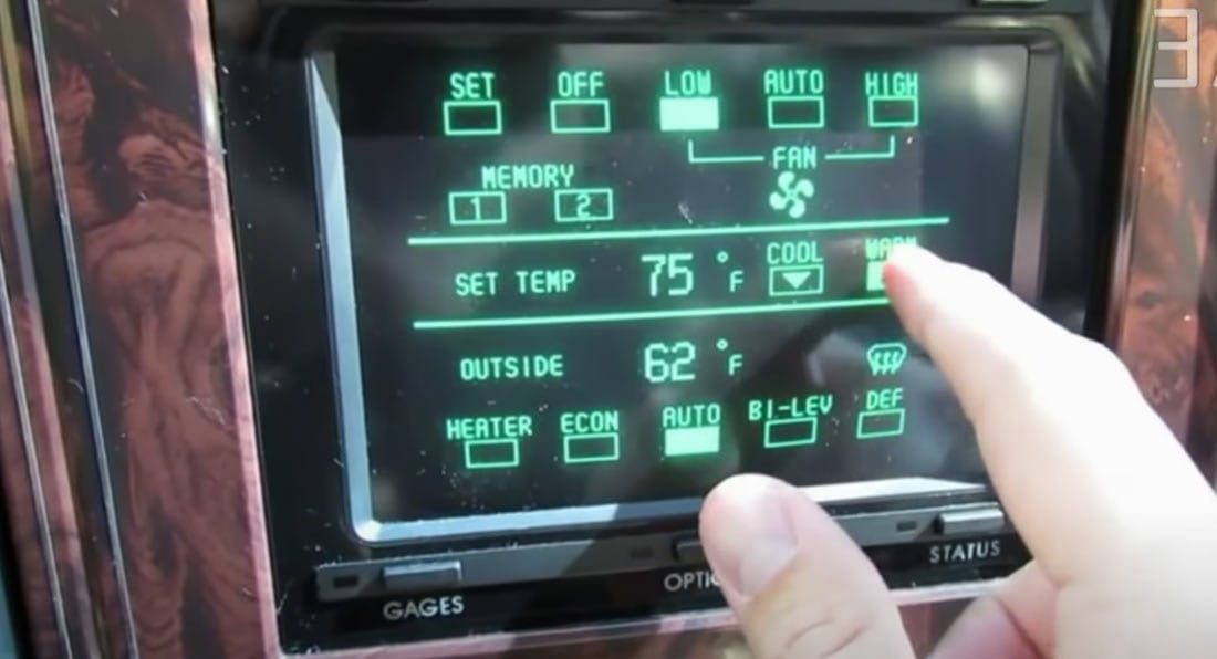 Nel 1986, la Buick Riviera era dotata del Graphic Control Center (GCC), un sistema touchscreen decisamente avanzato per l’epoca. Situato al centro del cruscotto, il GCC permetteva ai conducenti di controllare varie funzioni del veicolo, come la radio e il climatizzatore, semplicemente toccando lo schermo. Questa tecnologia era davvero avanzata per quegli anni, considerando che i anche i personal computer non erano ancora così diffusi.