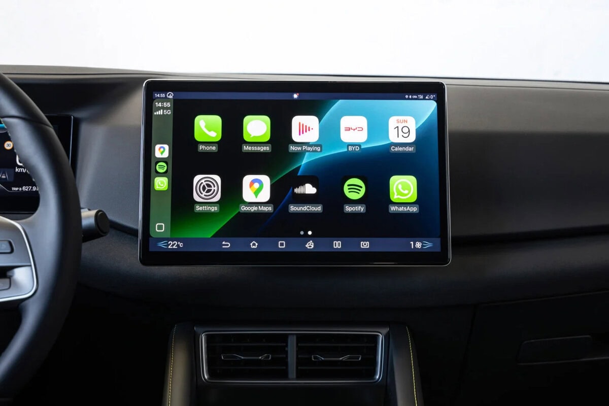 Al centro della plancia spicca il grande display touchscreen da 12,3 pollici (13 pollici nelle versioni più accessoriate), orientabile sia in modalità orizzontale che verticale. Il sistema operativo è fluido e include navigazione integrata, Apple CarPlay e Android Auto (anche wireless).