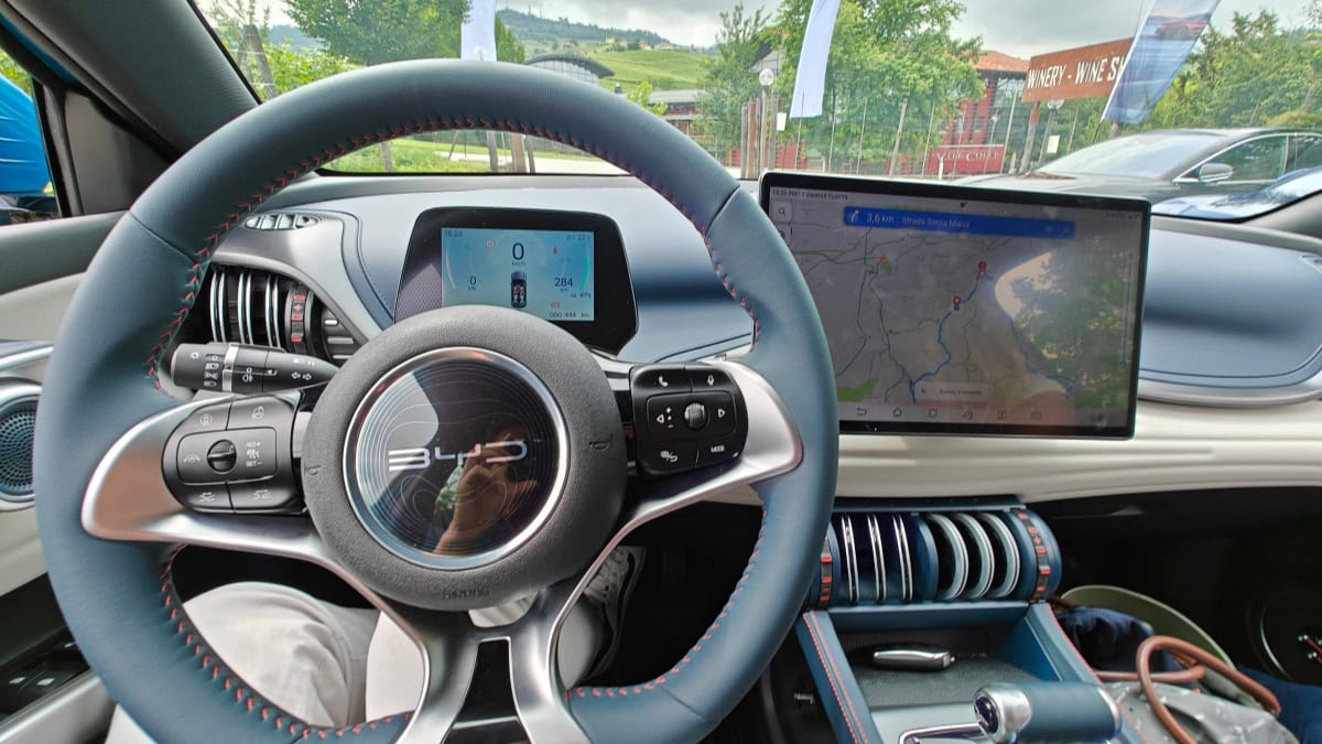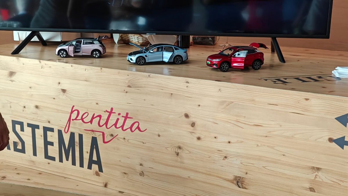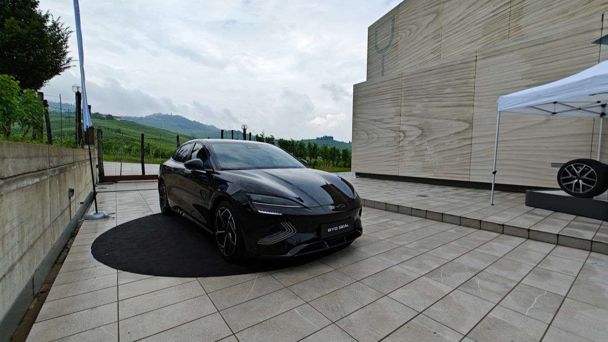 All’esterno della cantina c’era, solo da esposizione, anche la BYD Seal, sportiva elettrica dal design molto piacevole