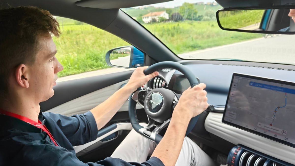Una non rara ripresa di me alla guida della BYD. In realtà stavo anche “parlando con lei”