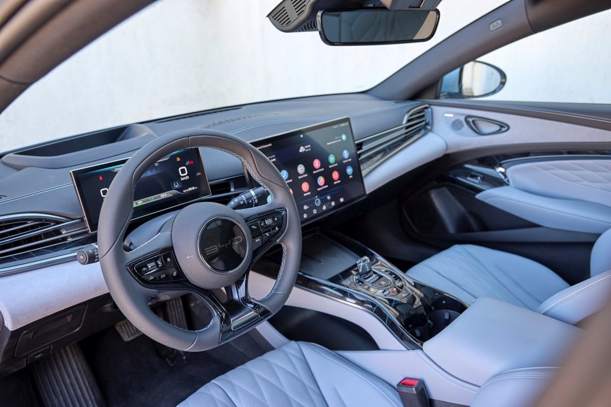 L’interno della BYD Seal offre uno spazio notevole, grazie al lungo passo di 2,92 metri. Ottimo l’impianto stereo Dynaudio a 12 altoparlant, che offrono una qualità di musica particolarmente brillante. Il tunnel centrale, alto e spazioso, offre un doppio pad di ricarica a induzione per smartphone.