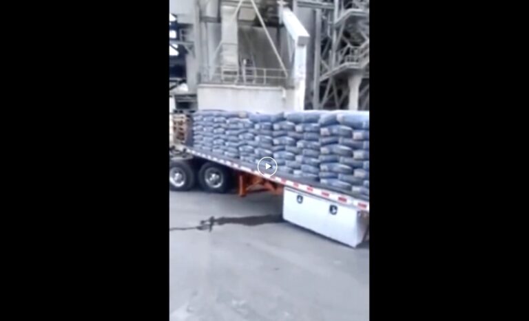 Quanto dovrebbe trasportare il camion? Proviamo a fare qualche calcolo a spanne. Ci sono 19 colonne, ognuna con 8 strati, ogni strato ha 8 sacchi. Ipotizziamo che siano sacchi di cemento da 50 kg, 19x8x8 = 1,216 sacchi x 50 kg = Tot 60.800 kg.
