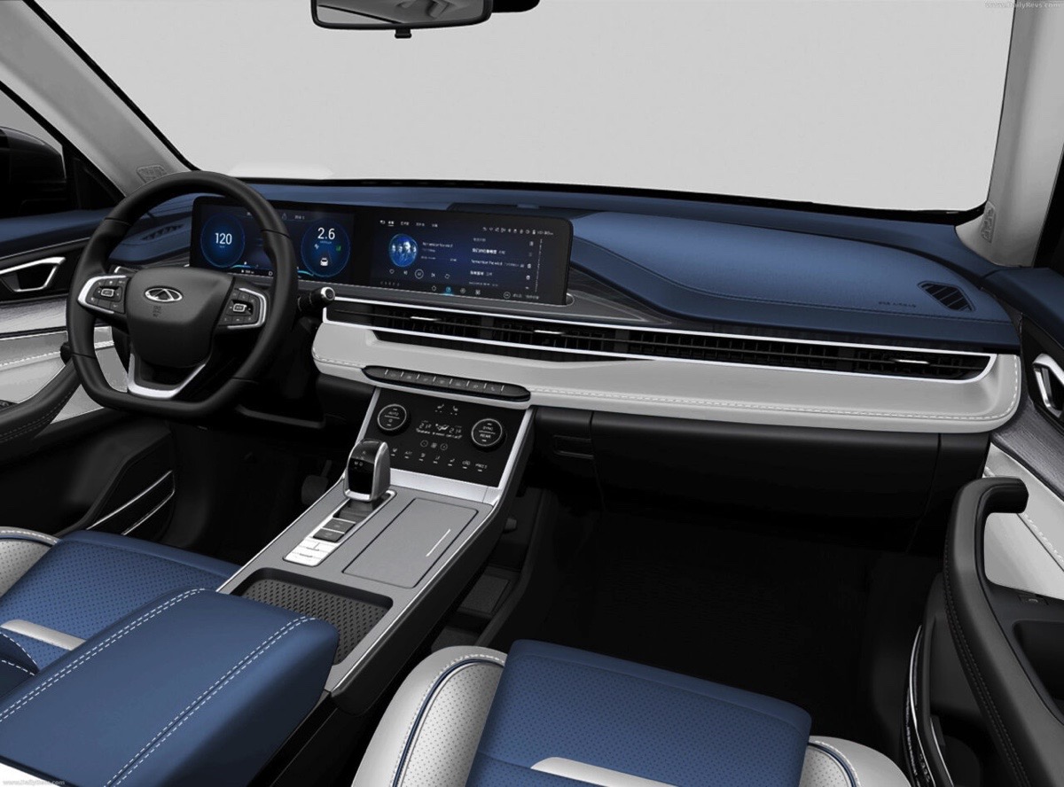 Gli interni sono stati ridisegnati. Le prese d’aria sono nascoste in una linea che corre sulla dashboard ed è presente un nuovo sistema infotainment con touch screen multimediale da 10,25 pollici”. Sono presenti altri pulsanti allineati in fila sulla console centrale. Il tunnel a due piani e la leva del cambio sono gli stessi della Tiggo 5x Superhero Edition.