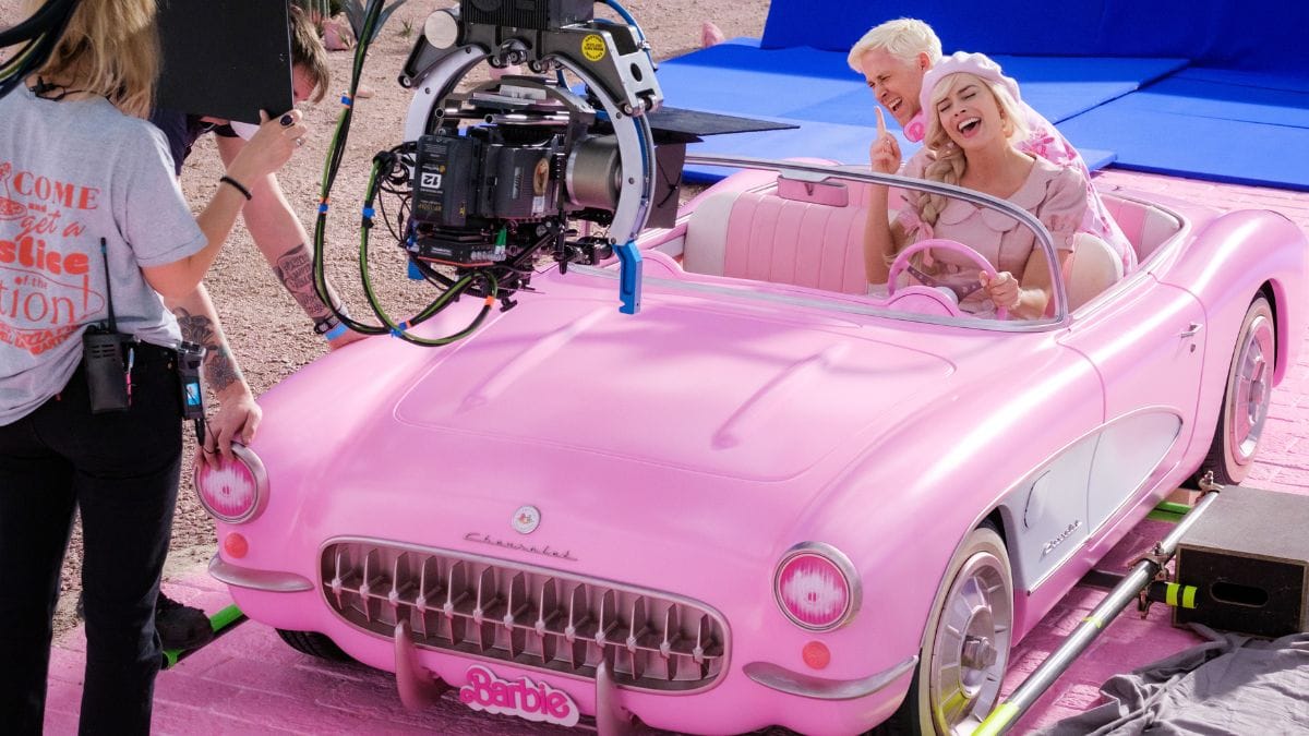 Nessuna delle auto reali del film è rosa: lo sono solo quelle giocattolo di Barbieland, tra cui la Corvette cabrio vintage che si vede a inizio film (e che si può guidare in Forza Horizon 5) e poi un Hummer EV “rubato” a Ken e brandizzato in rosa. Quelle reali perdono i colori pastello del mondo dei giocattoli, e si dividono nel blu acceso della Blazer e nel nero profondo dei SUV di rappresentanza dei dirigenti Mattel.