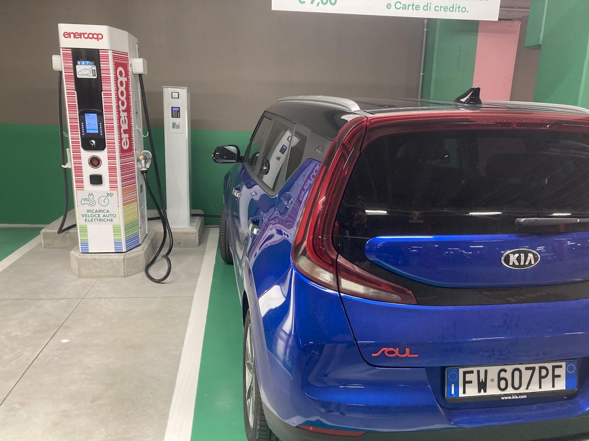 Anche Coop, con le colonnine elettriche Enercoop, ha pensato a chi guida elettrico, permettendogli di ricaricare completamente, o quasi, la propria vettura mentre fa la spesa.