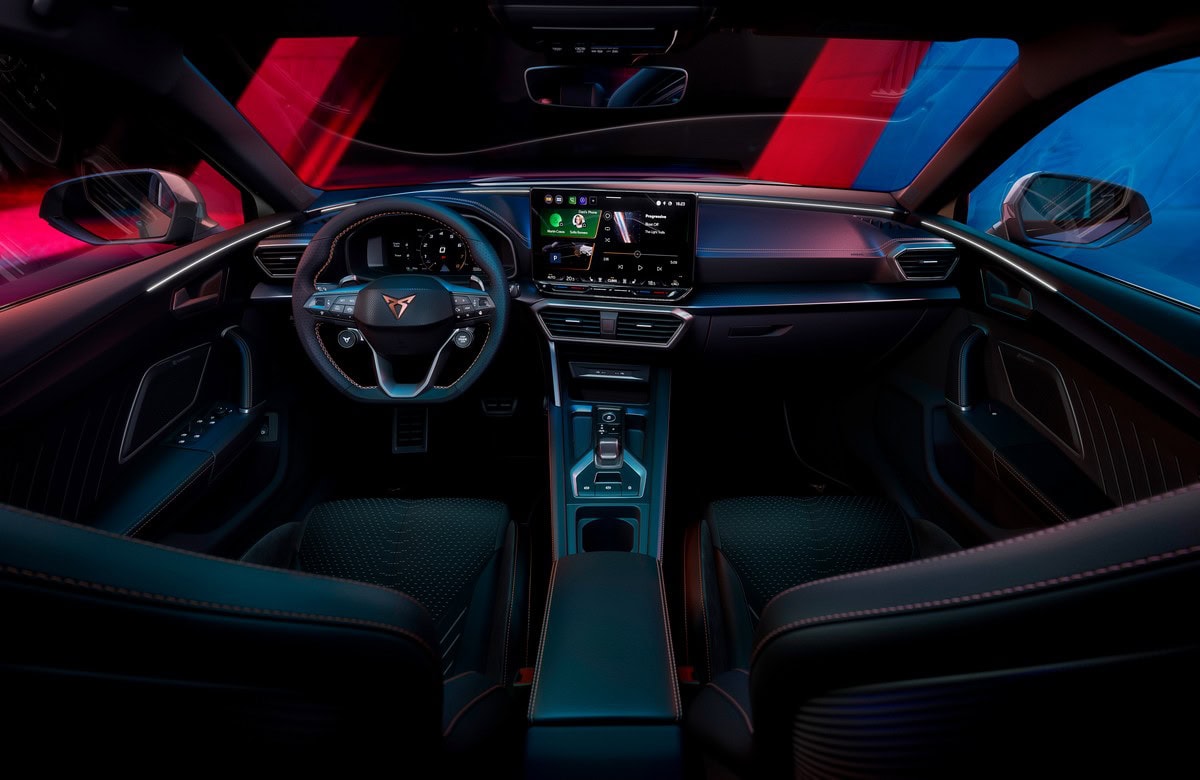 Gli elementi stilistici e tecnologici del design esterno si ritrovano anche nell’abitacolo. Il volante racing Cupra, con pulsante di avviamento e selezione della modalità di guida (di serie per le versioni con cambio automatico DSG), riflette l’attenzione al dettaglio. I sedili sportivi, l’architettura digitale e i materiali rinnovati conferiscono un tocco di classe superiore. Il design parametrico 3D della plancia, la console centrale riprogettata e le finiture in colore tech copper e dark aluminium arricchiscono l’abitacolo. I materiali utilizzati garantiscono comfort e sicurezza per conducente e passeggeri.
