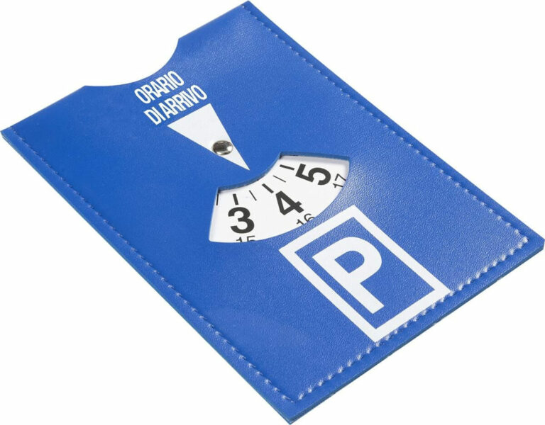Il disco orario auto è uno strumento utilizzato per regolare la durata della sosta nei parcheggi. Questo accessorio, di solito di forma rettangolare e colore blu, presenta una ‘P’ sulla parte anteriore e una finestrella che mostra l’orario di arrivo.