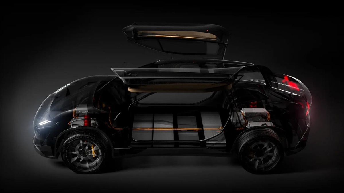 Questo SUV è ovviamente elettrico, arriva a 2.000 CV di potenza (come la Lotus Evija) e ha una coppia altrettanto importante, anche se non è specificata. Merito dei 4 motori elettrici, che tra l’altro assicurano una trazione integrale particolarmente efficiente.