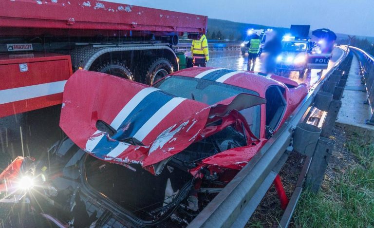 Come si vede nelle immagini, l’impatto a causato danni notevoli alla parte anteriore della Ferrari 485 Speciale, che si è fermata sulla corsia di sorpasso solo dopo circa 250 metri, mentre il conducente è rimasto fortunatamente illeso. Dopo che il luogo dell’incidente è stato messo in sicurezza e pulito, la Ferrari è stata trasportata dai vigili del fuoco.