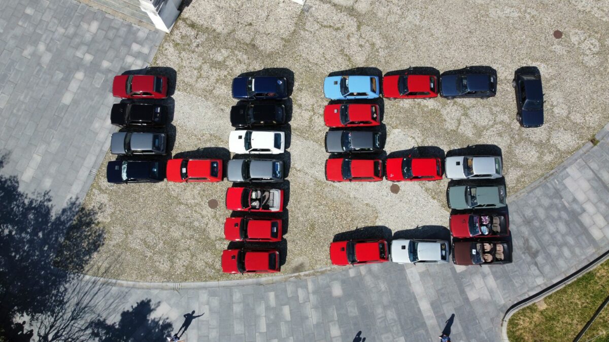 45 piloti per ricreare, con le loro auto, un 45 gigante da fotografare via aerea. L’idea è venuta a William Jonathan, che ha guidato le operazioni di parcheggio e che è un creator dell’auto particolarmente appassionato delle Fiat storiche, che ha gestito la manovra “in diretta”, tra i passanti riuniti.