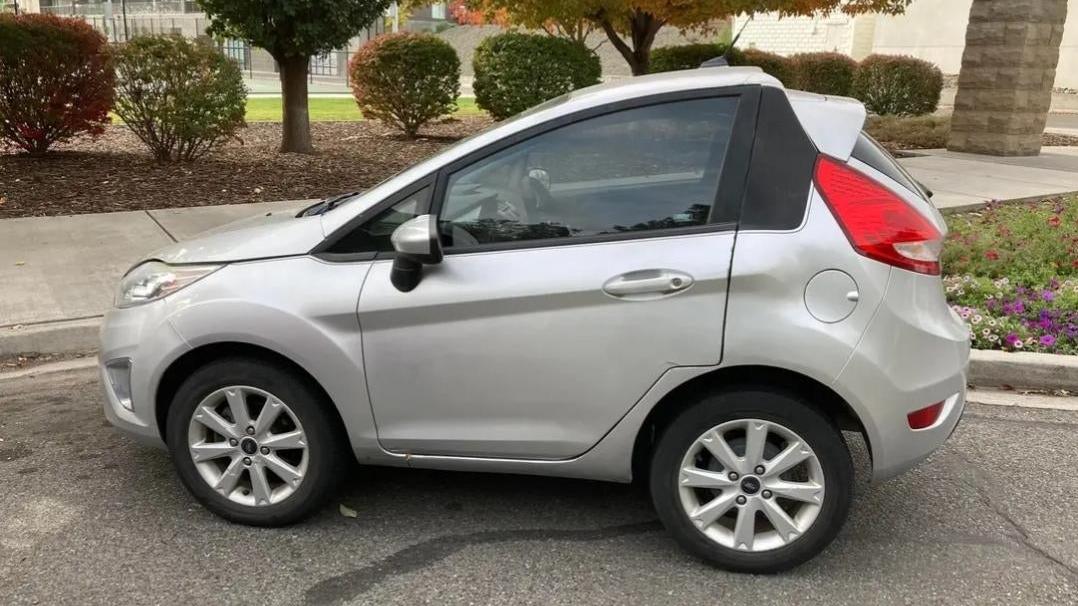 Da lontano sembra una di quelle automobili fatte per i bambini, ma in realtà è una “vera” Ford Fiesta di sesta generazione “compressa”, ovvero privata di tutta la sua parte centrale.