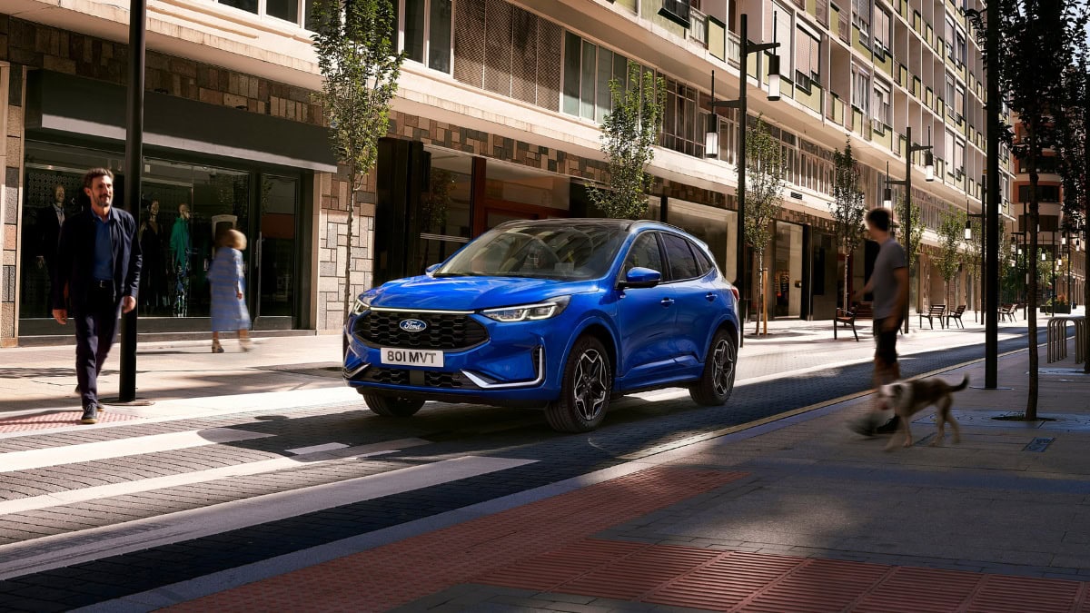 Kuga Hybrid (full hybrid) offre il comfort di un propulsore elettrificato, con fino a 900 km di autonomia con un pieno di carburante e fino al 64% di guida puramente elettrica in città.