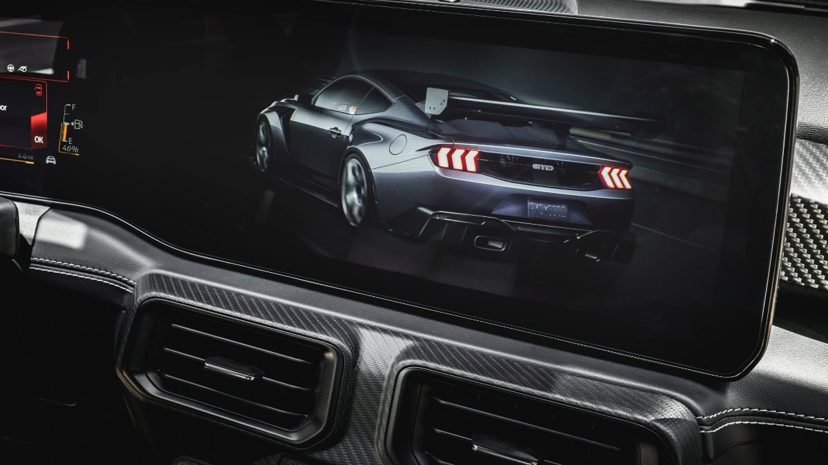 Ogni modalità di guida presenta una Mustang GTD, mentre il nuovo Performance gauge cluster mette l’indicatore di marcia e il contagiri al centro, eliminando tutte le informazioni superflue.