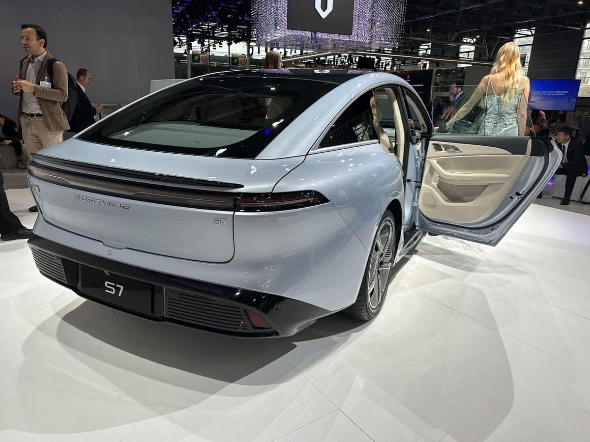 Tra le caratteristiche principali del design spiccano le maniglie delle porte a scomparsa e le coperture delle ruote a bassa resistenza, soluzioni pensate per ridurre ulteriormente il coefficiente di resistenza. Le ruote, disponibili in versioni da 19 o 20 pollici, completano l’aspetto sportivo del veicolo. La linea del tetto, che si inclina dolcemente dal montante B, conferisce alla Forthing S7 una silhouette coupé, enfatizzando ulteriormente la sua sportività.
