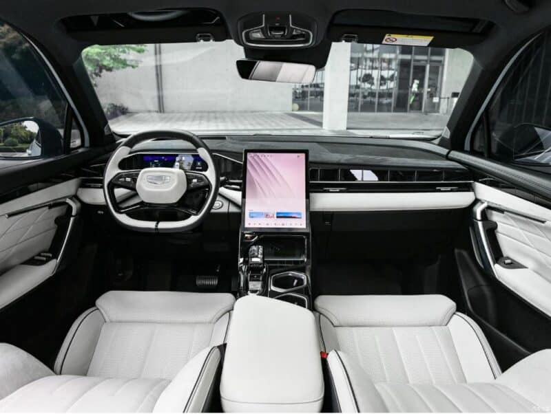 Nuovo il volante squadrato a quattro razze, anch’esso pensato per inibire la crescita dei batteri. Nuovo anche il Geely Galaxy OS Air con aggiornamenti OTA, spinto da un chip Qualcomm 8155 responsabile anche degli ADAS di secondo livello. Geely Boyue L ha anche sedili climatizzati.