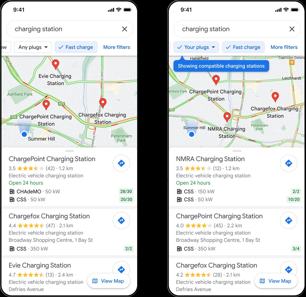 La prima di queste è il supporto per la ricerca di stazioni di ricarica rapida per auto elettriche. Non si tratta di una novità assoluta, perchè Google Maps è già in grado di mostrare le stazioni di ricarica nelle vicinanze. Grazie a questo nuovo aggiornamento, sarà possibile utilizzare un filtro per la ricarica rapida che mostrerà le stazioni dotate di caricabatterie da 50 kW o superiori.