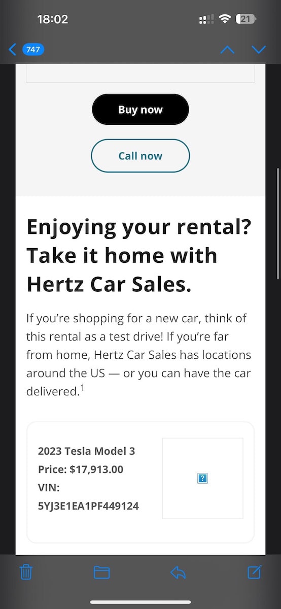 Hertz sta cercando nuovi modi per smaltire il proprio parco auto negli USA, in particolare le Tesla Model 3, proponendo ai clienti di acquistarle direttamente al termine del noleggio. Si era già parlato dei problemi di Hertz con le Tesla, soprattutto sul valore residuo, ma ora l’offerta viene fatta direttamente ai clienti.