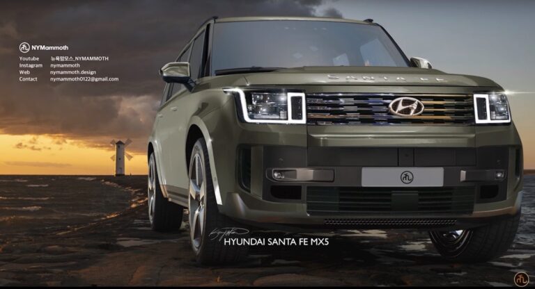 Ma torniamo al video rendering di oggi, che riguarda principalmente il frontale quasi verticale della nuova Hyundai Santa Fe di NYMAMMOTH. La base è ovviamente una serie di foto spia e considerazioni sui modelli auttuali di Hyundai, ma anche qualcosa che riguarda Kia.