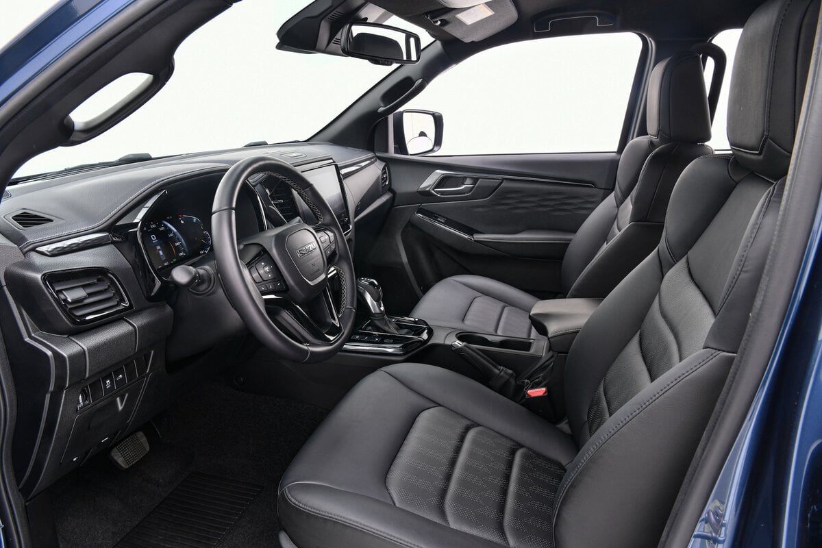- D-Max EV DL40 equivalent: stile cromato, infotainment da 8″, sedili anteriori riscaldabili, fari Bi-LED, rivestimenti in pelle, clima bi-zona, sensori parcheggio anteriori e posteriori, Rough Terrain Mode, sistema audio a 6 altoparlanti.