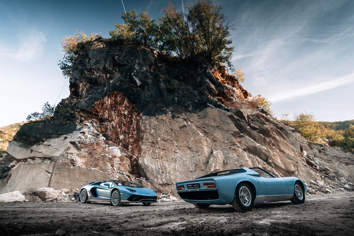 La Lamborghini Ultimae Roadster Ad Personam, con guida a sinistra, rende omaggio alla one-off Miura Roadster. La carrozzeria è in Azzurro Flake, colore appositamente studiato per replicare quello (unico) della Miura, rivedendone solo la brillantezza per motivi di omologazione.