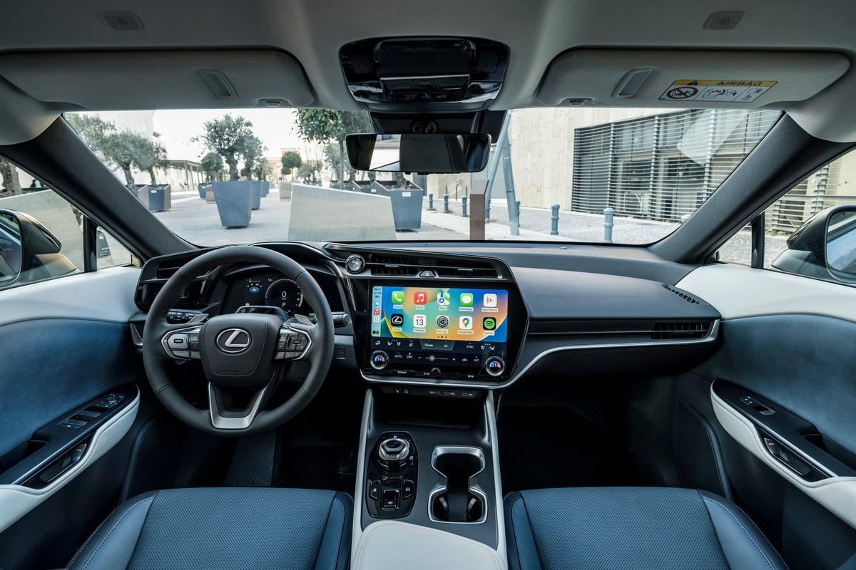 La batteria è posizionata interamente sotto il pavimento dell’abitacolo. L’unità comprende 96 celle con una capacità lorda di 71,4 kWh. La maggior parte delle versioni di RZ, con ruote da 20 pollici, raggiunge un’autonomia di 395 km nel ciclo combinato WLTP. Quelle che adottano ruote da 18 pollici vedono l’autonomia estesa di circa 40 km.