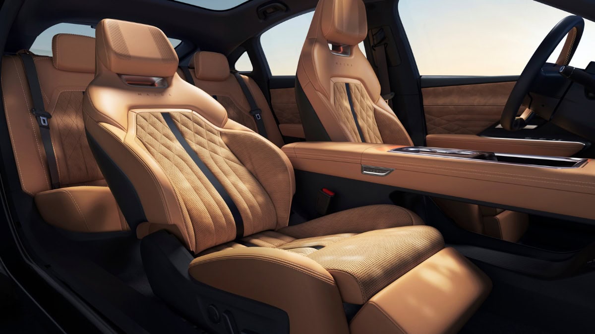 C’è anche una base per la ricarica wireless dello smartphone, due portabicchieri, un impianto audio Sony e un sedile “gravità zero” per il passeggero anteriore. Le funzioni sembrano essere controllate quasi esclusivamente tramite lo schermo o il comando vocale.