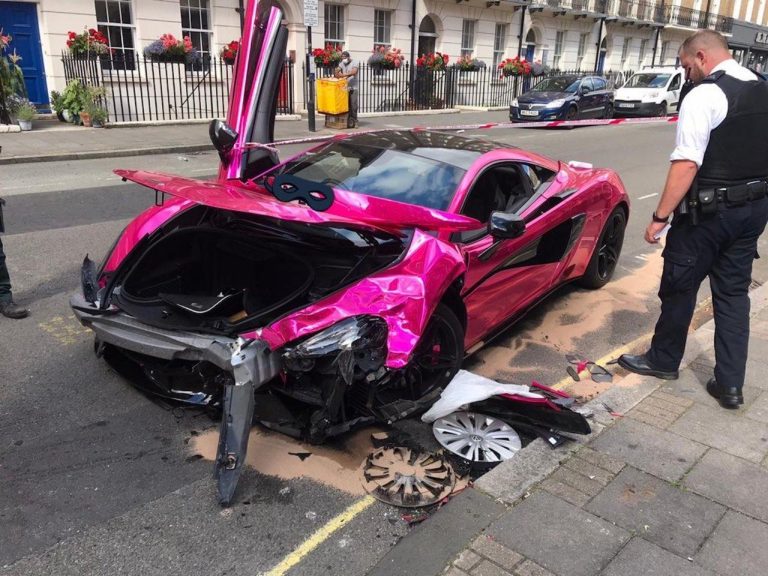 Una McLaren 570S completamente rosa è rimasta distrutta in un incidente nel centro di Londra, nella zona con limite massimo di 20 miglia all’ora, ovvero 32 km/h. Imperizia, distrazione o forse colpa dell’altro veicolo, il motivo che ha portato all’incidente non è ancora stato chiarito.