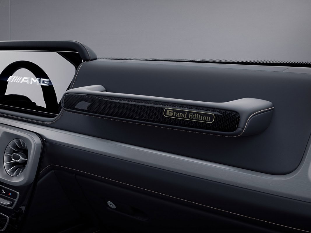 I maniglioni sul tetto sono rifiniti in nappa. L’inserto della maniglia lato passeggero è in carbonio con filo di rame e reca anche un distintivo di alta qualità con la scritta “Grand Edition”. Altre parti dell’abitacolo sono rifinite in carbonio con filo di rame. Il volante AMG Performance in microfibra Dinamica è dotato di una chiusura al volante con una targhetta G 63. La Mercedes-AMG G 63 Grand Edition può essere ordinata fin da ora ad un prezzo che parte da 235.050 euro.