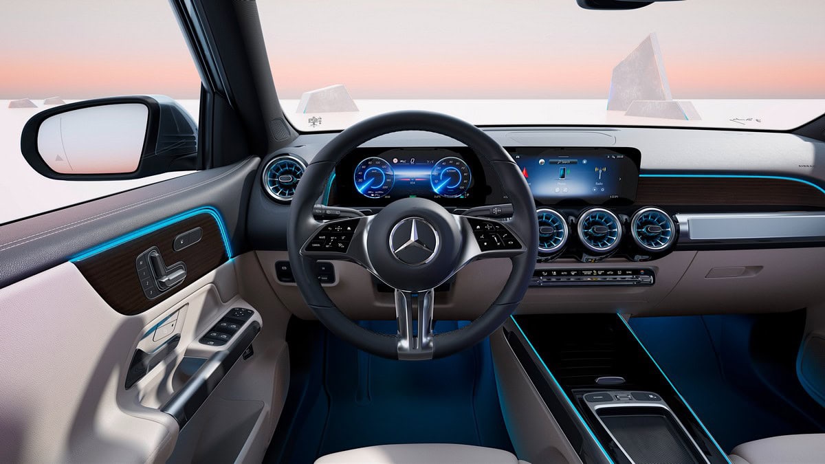 Con una superficie dei pannelli neri di nuova concezione con un motivo a stella nella parte anteriore, EQA e EQB si allineano visivamente ai loro fratelli maggiori. Una fascia luminosa collega le luci diurne dei fari, mentre un nuovo paraurti sottolinea l’effetto ampio del frontale del veicolo. I designer hanno modificato anche l’interno dei fanali posteriori. Le innovazioni nell’abitacolo comprendono il volante di ultima generazione con comandi a sfioramento e le finiture in legno di tiglio marrone a poro aperto, il motivo Mercedes-Benz e il motivo Mercedes Benz retroilluminato.