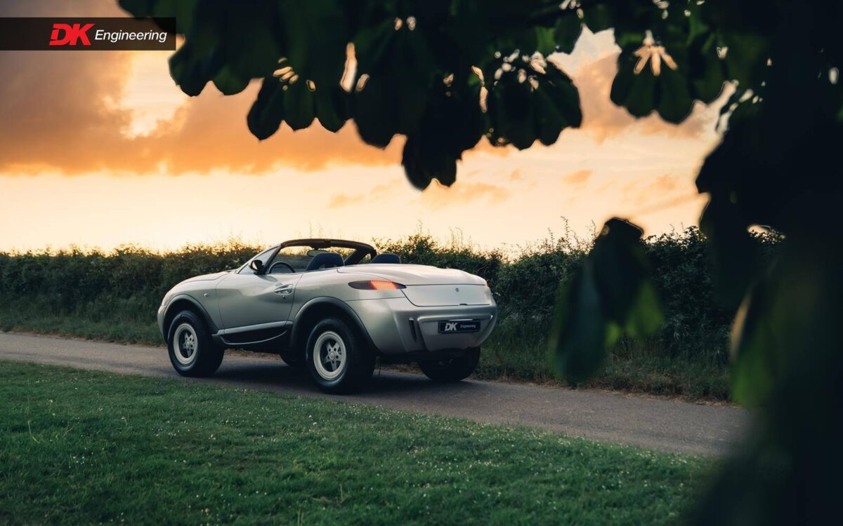 Cosa possiamo riconoscere della Mercedes Classe G in questo strano incrocio? La meccanica: sotto questa particolare carrozzeria c’è un motore sei cilindri in linea da 3,2 litri accoppiato a un cambio automatico a quattro velocità che aziona tutte e quattro le ruote. Conserva anche il blocco del differenziale e i pneumatici adatti a lasciare l’asfalto senza problemi.