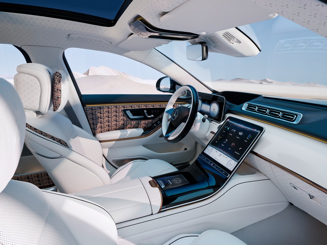 Un ulteriore elemento di spicco è rappresentato dall’illuminazione surround con proiezione animata. All’apertura delle porte, i motivi animati Mercedes-Benz o Mercedes-Maybach, realizzati con tecnologia LCD, si accendono e illuminano elegantemente la zona d’ingresso anteriore e posteriore.