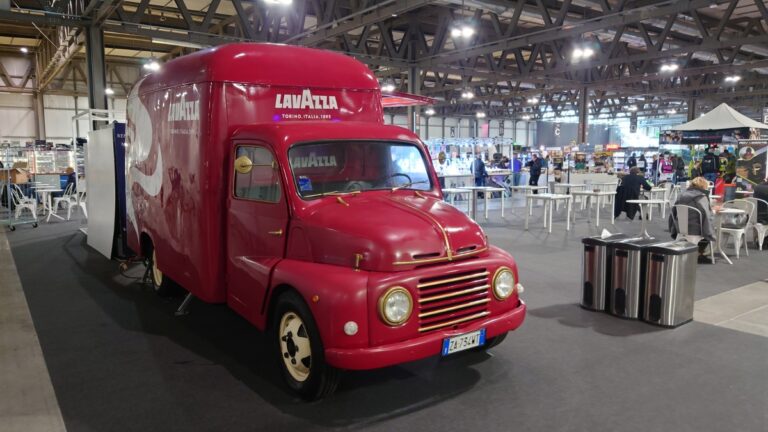 Anche quest’anno ci sono alcuni outsider che meritano. Per esempio, il Fiat 615 brandizzato Lavazza, nel tipico rosso dell’azienda di caffè italiana, che funge da vero punto di ristoro per prendersi un caffè o un’altra bevanda. Il 615 era il Ducato degli anni Cinquanta, un autocarro leggero prodotto dal 1951 al 1965 inizialmente con lo stesso quadricilindrico in linea a benzina della Fiat 1400 da 39 CV e poi anche con il diesel quadricilindrico da 40 CV, noto come 615N. Era inoltre prodotto col marchio Zastava per l’Est Europa.