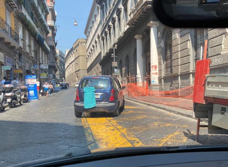 Succede nella ZTL di Napoli, dove per entrare senza averne diritto è “sufficiente” appendere un asciugamano per nascondere la targa dell’automobile.